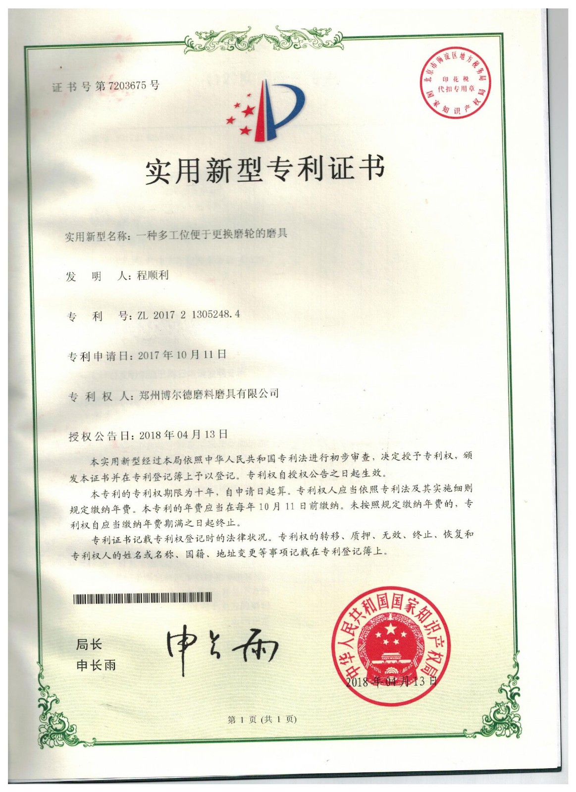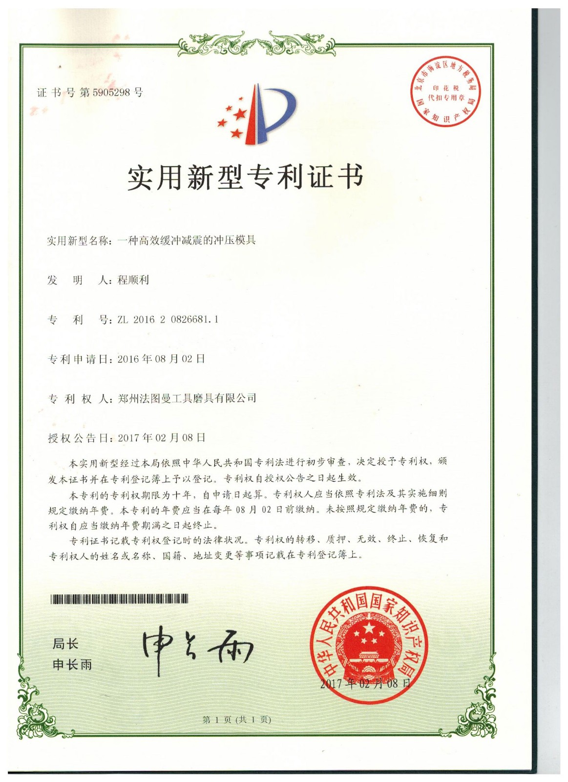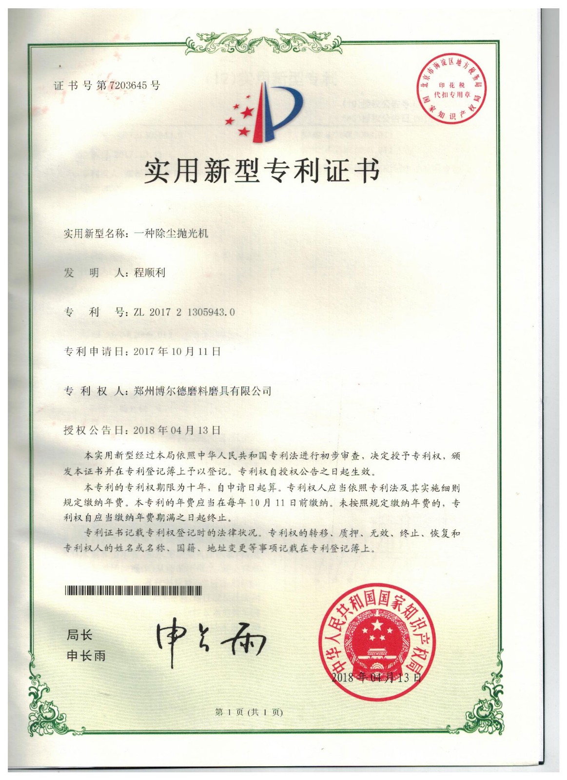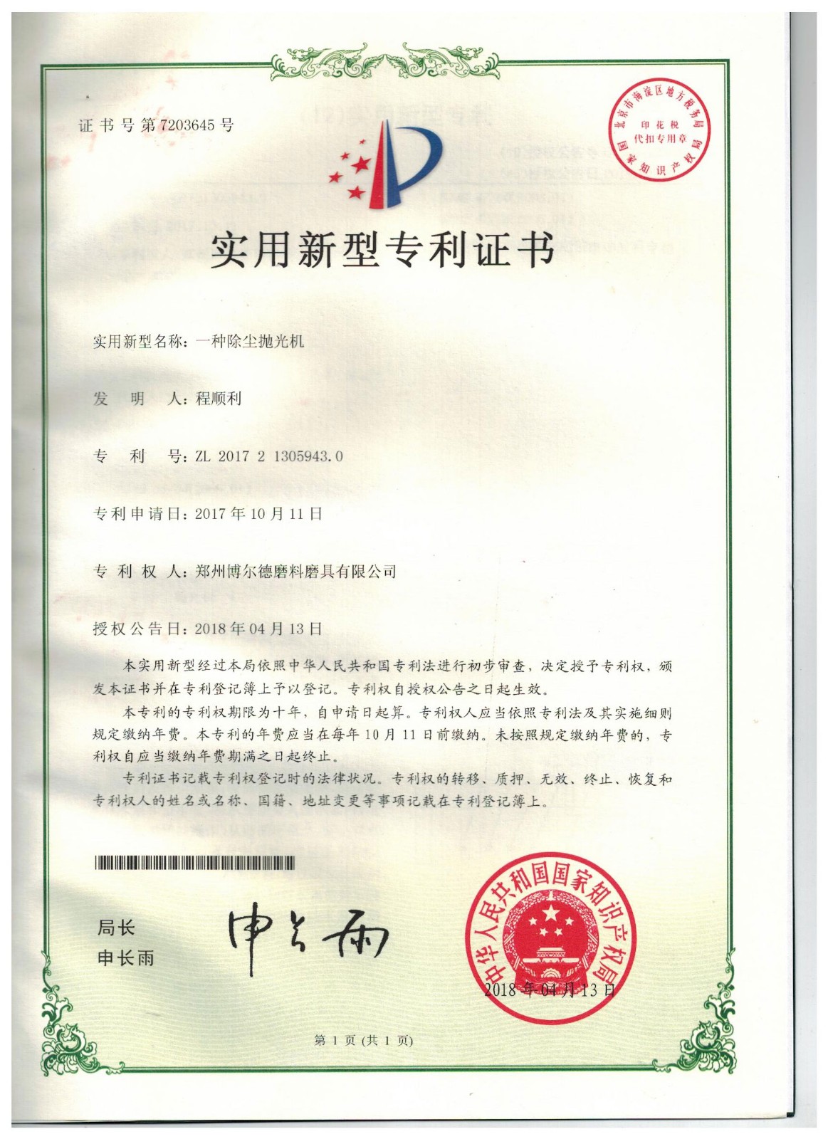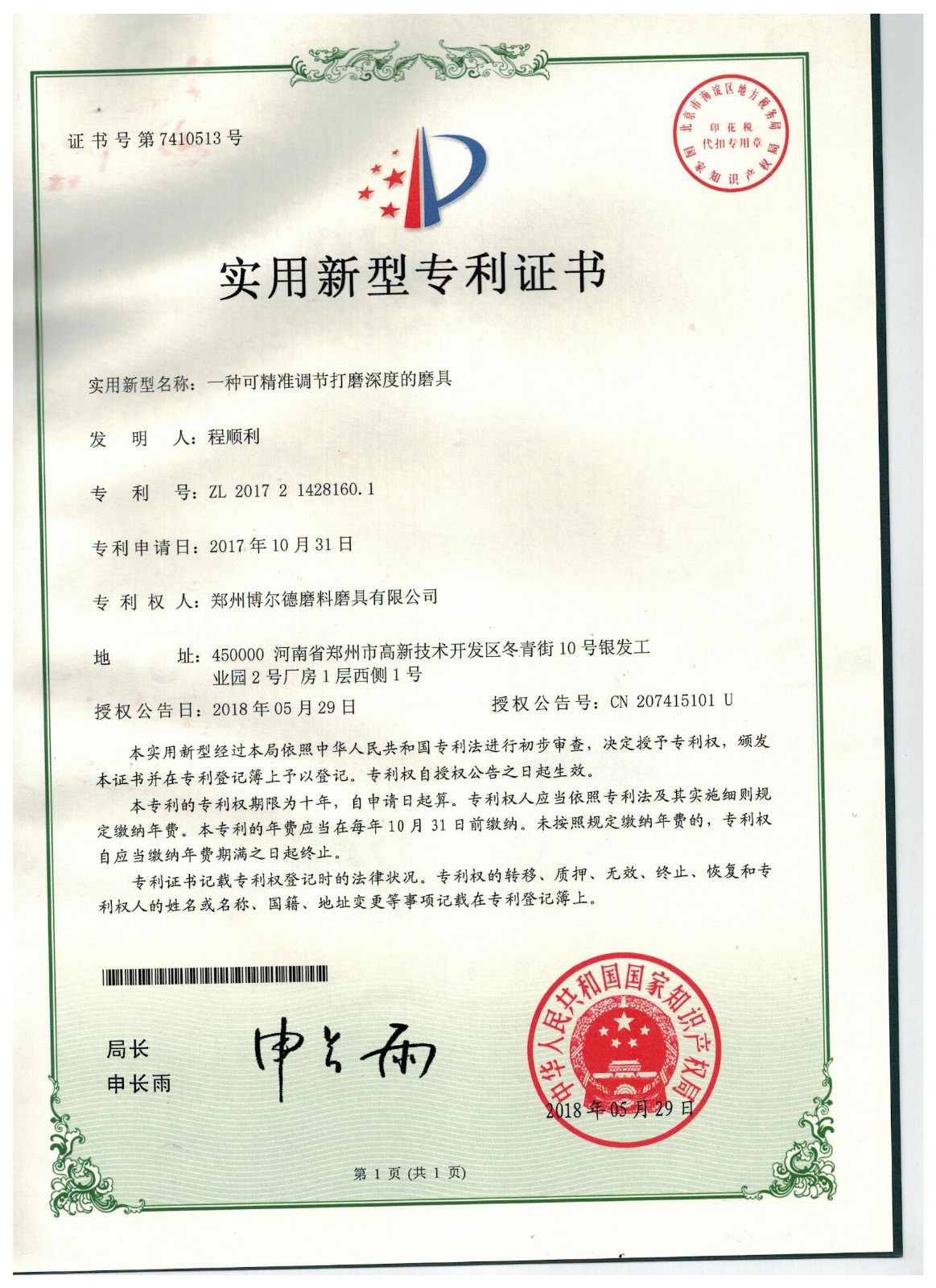 博爾德集團旗下專利證書展示