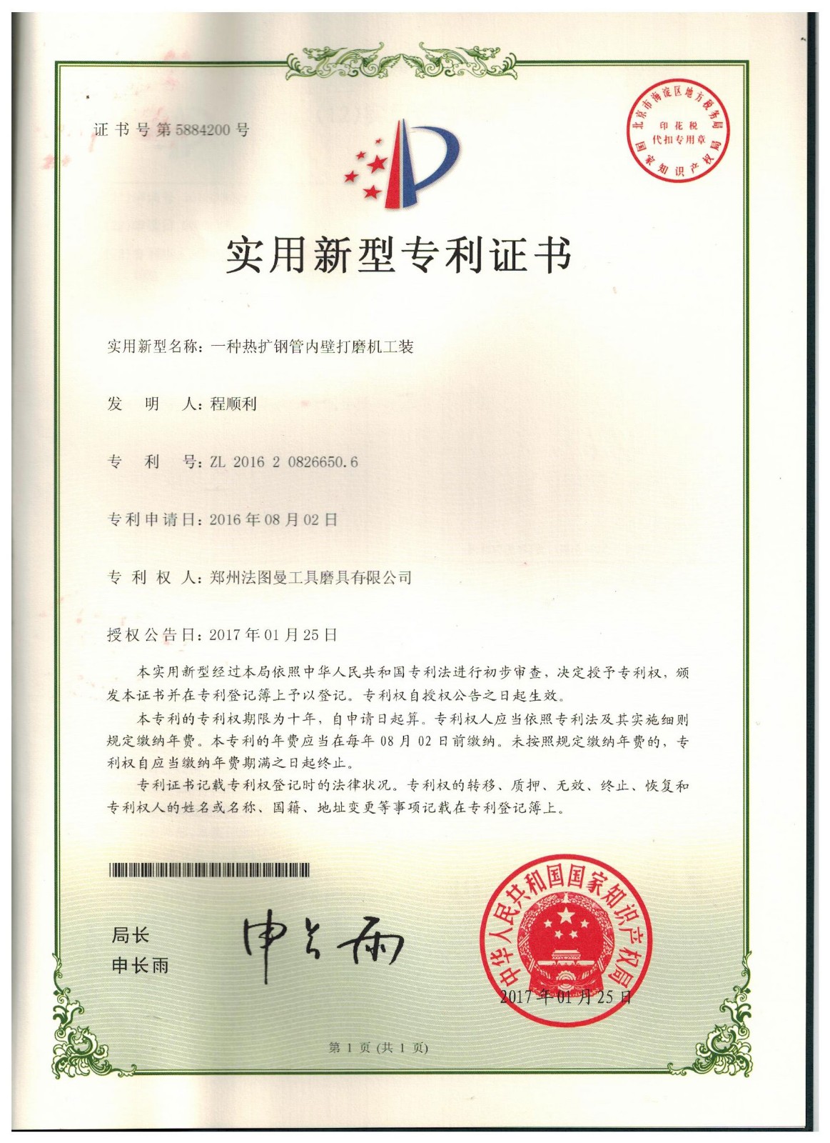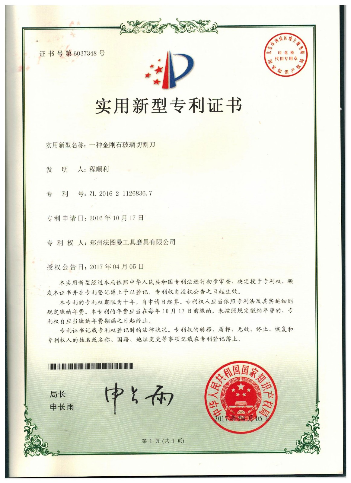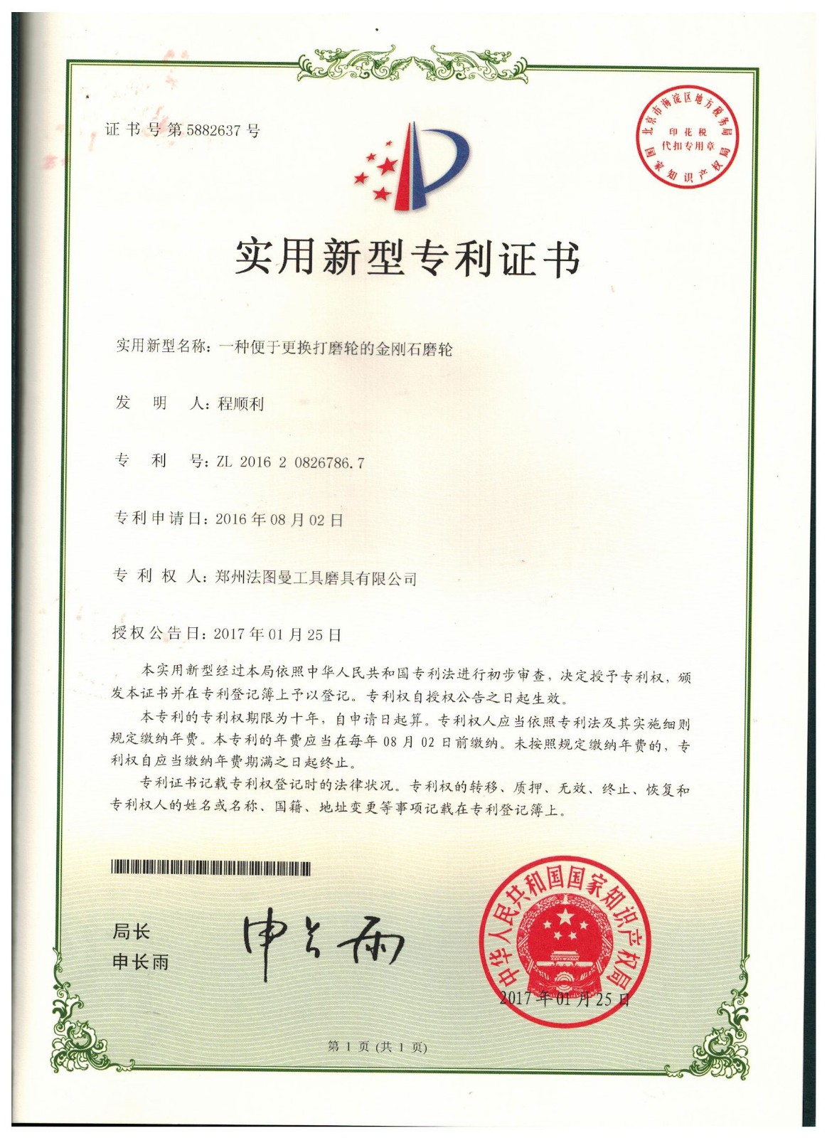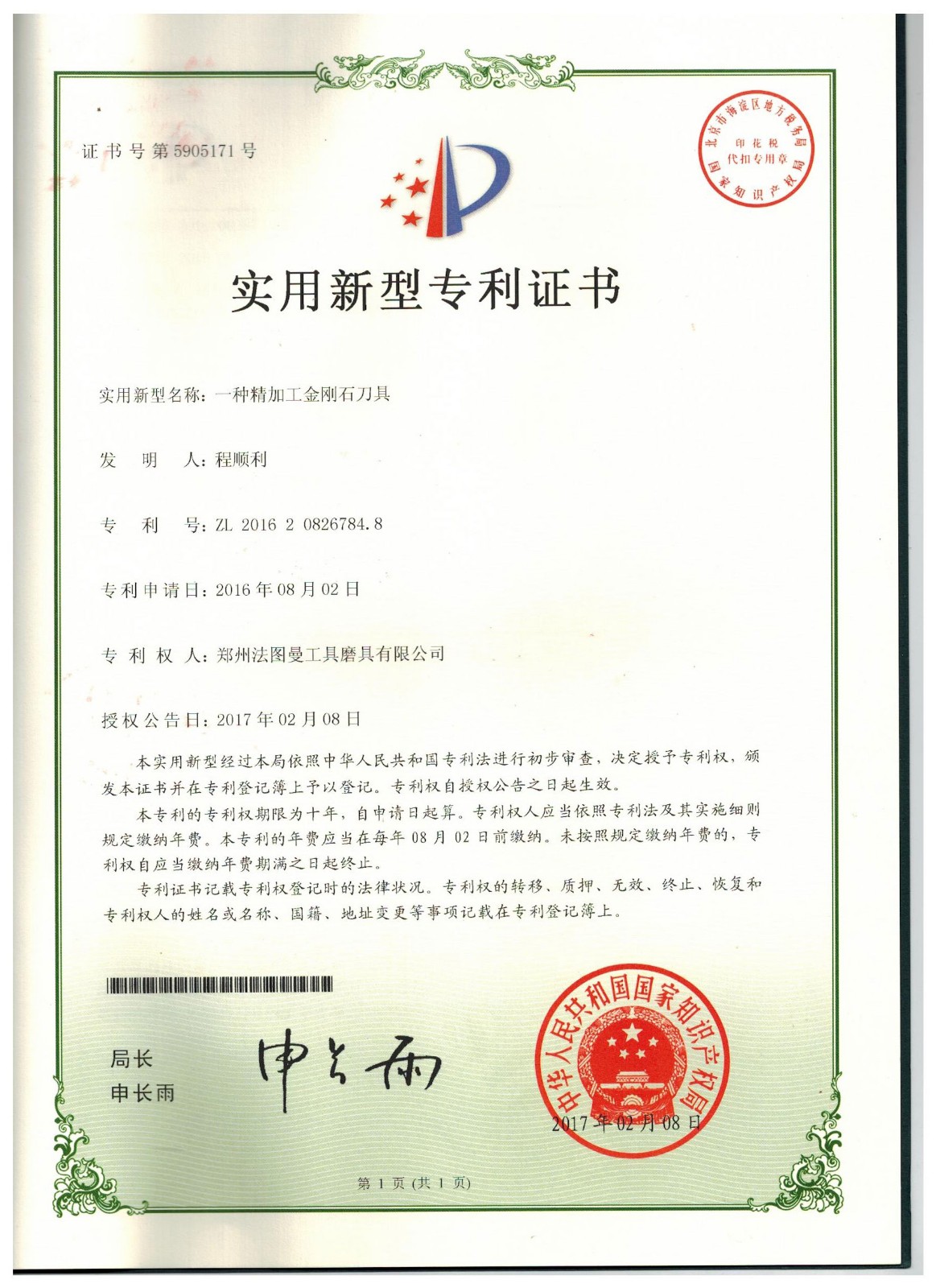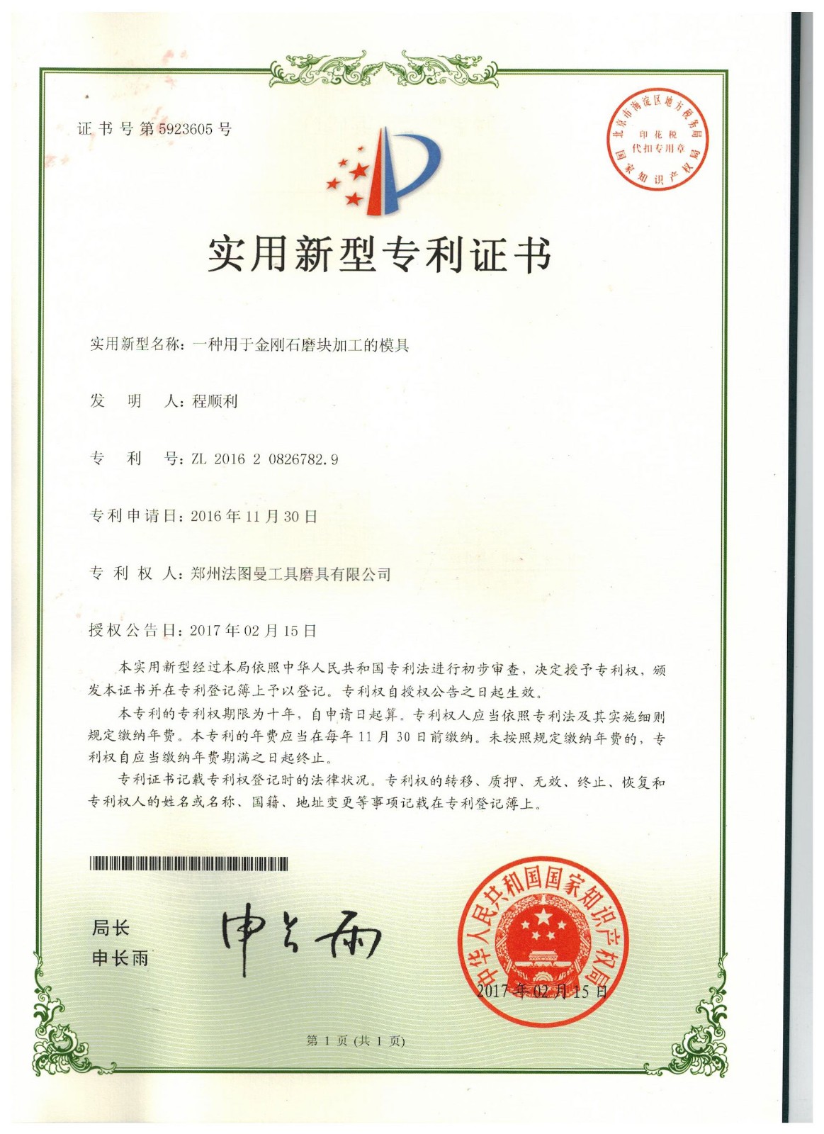 博爾德集團旗下專利證書展示