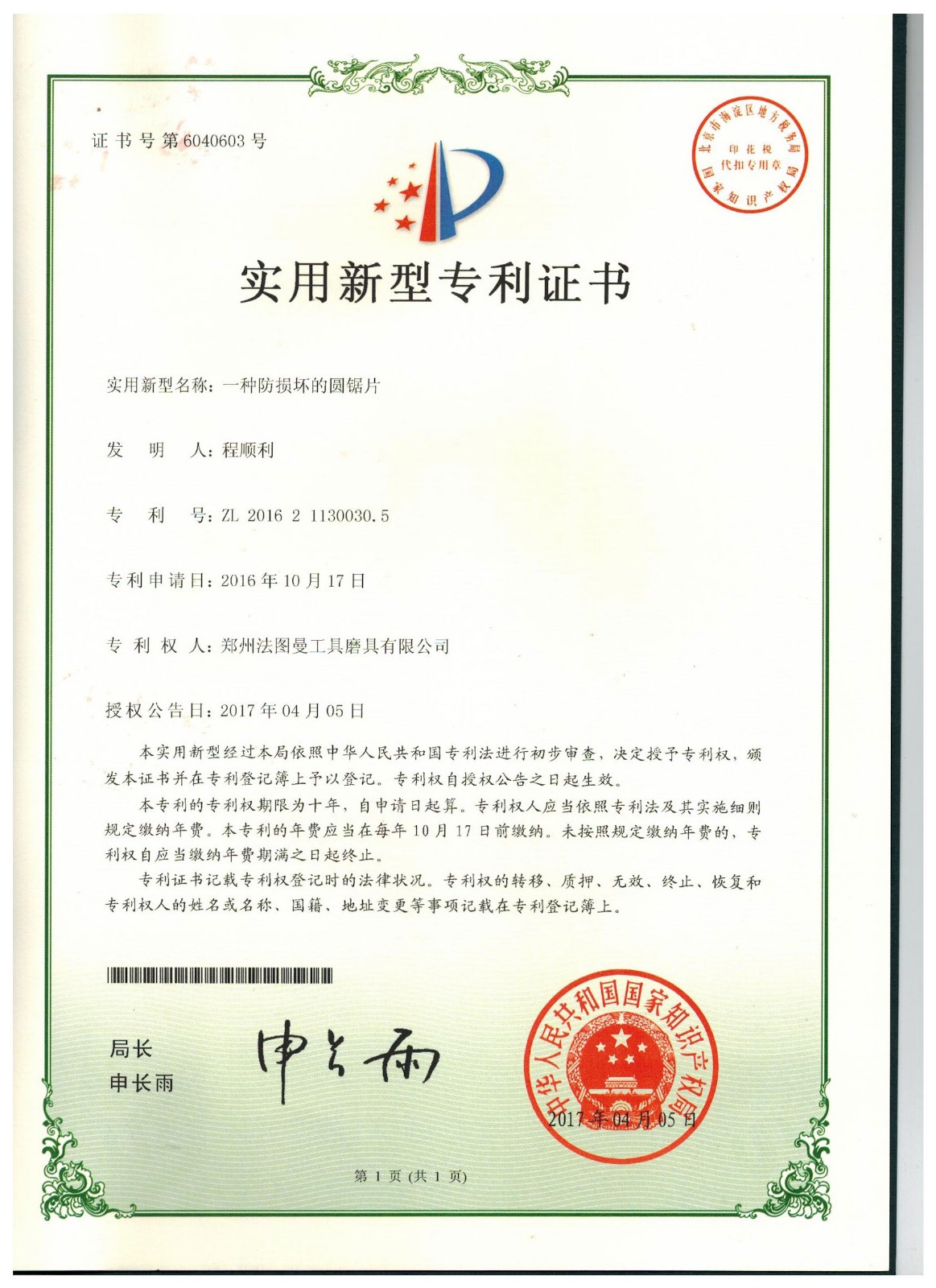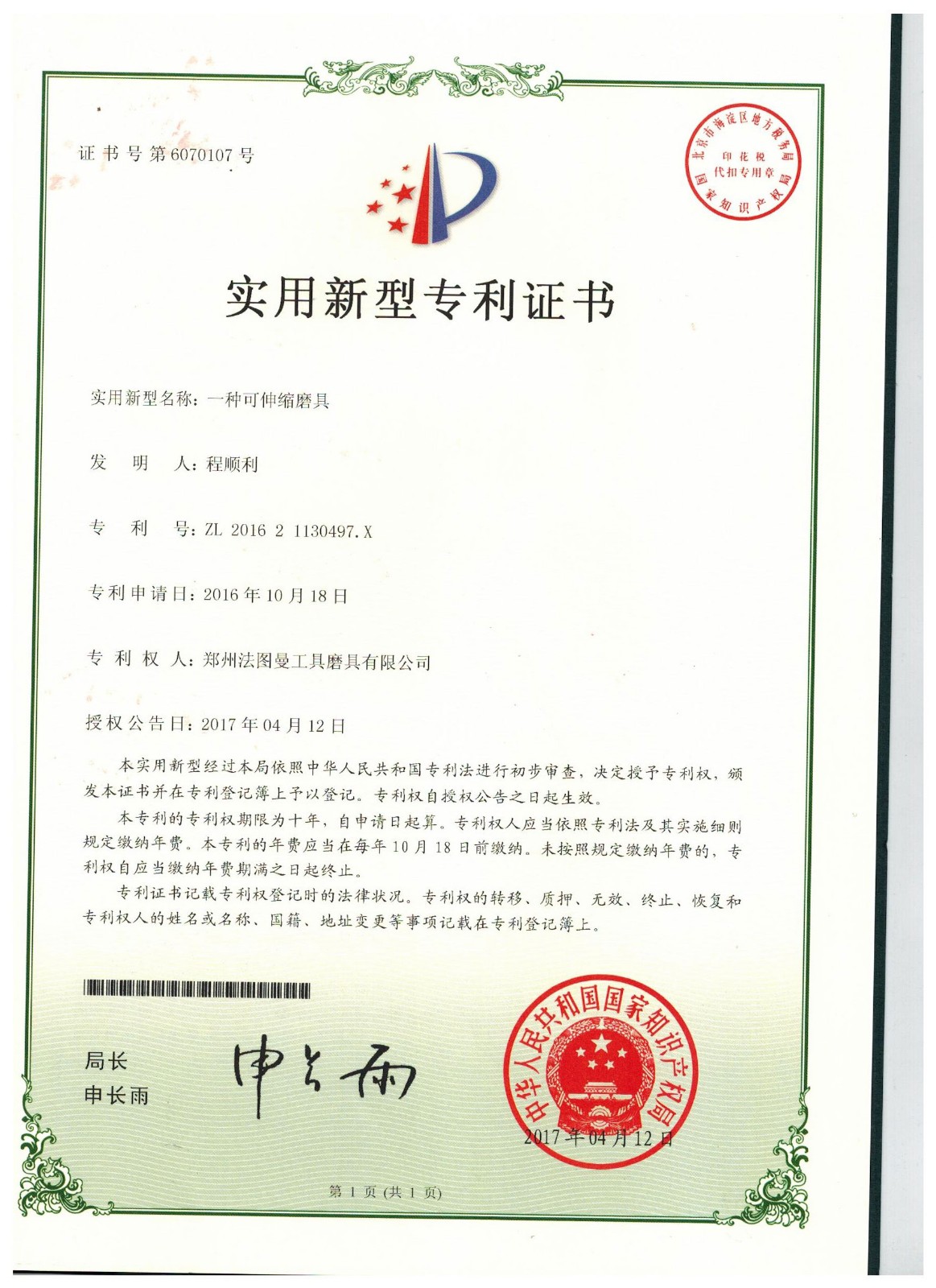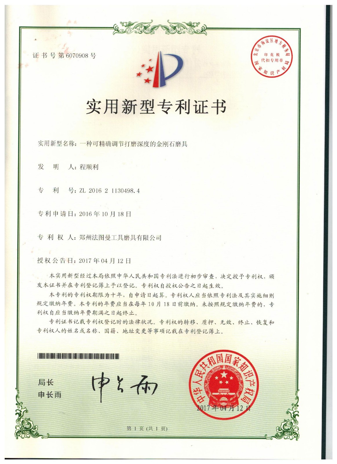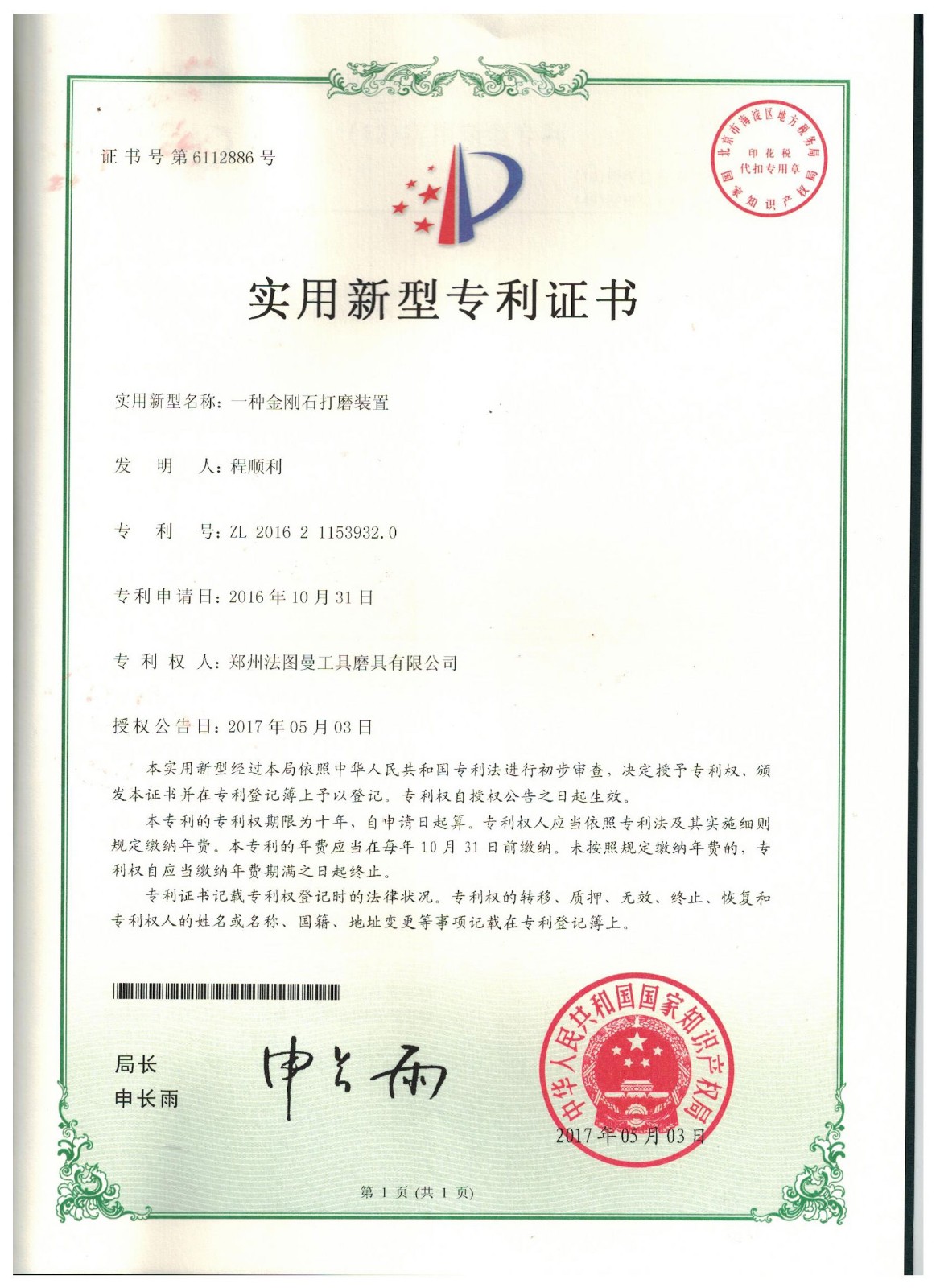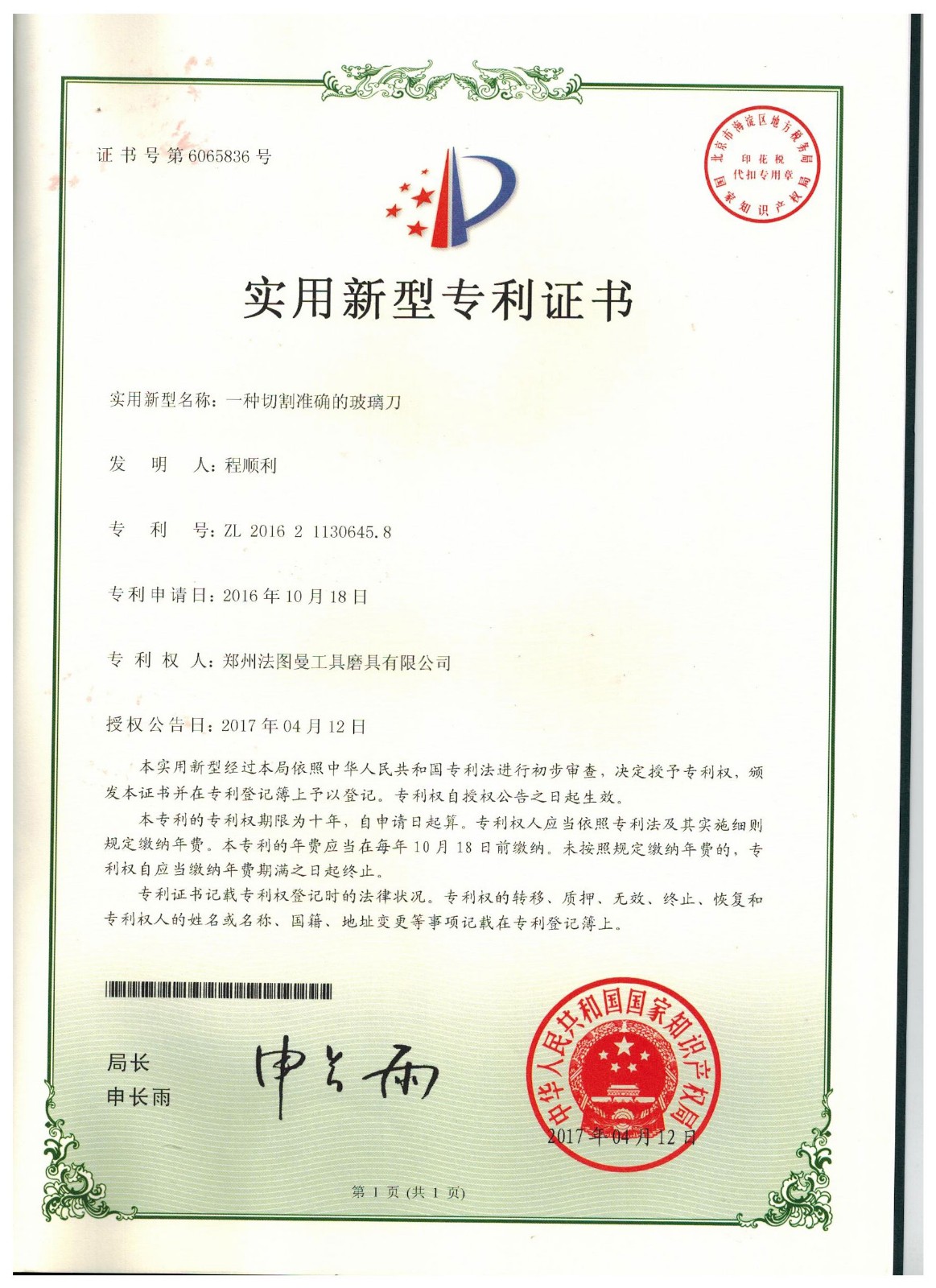 博爾德集團旗下專利證書展示