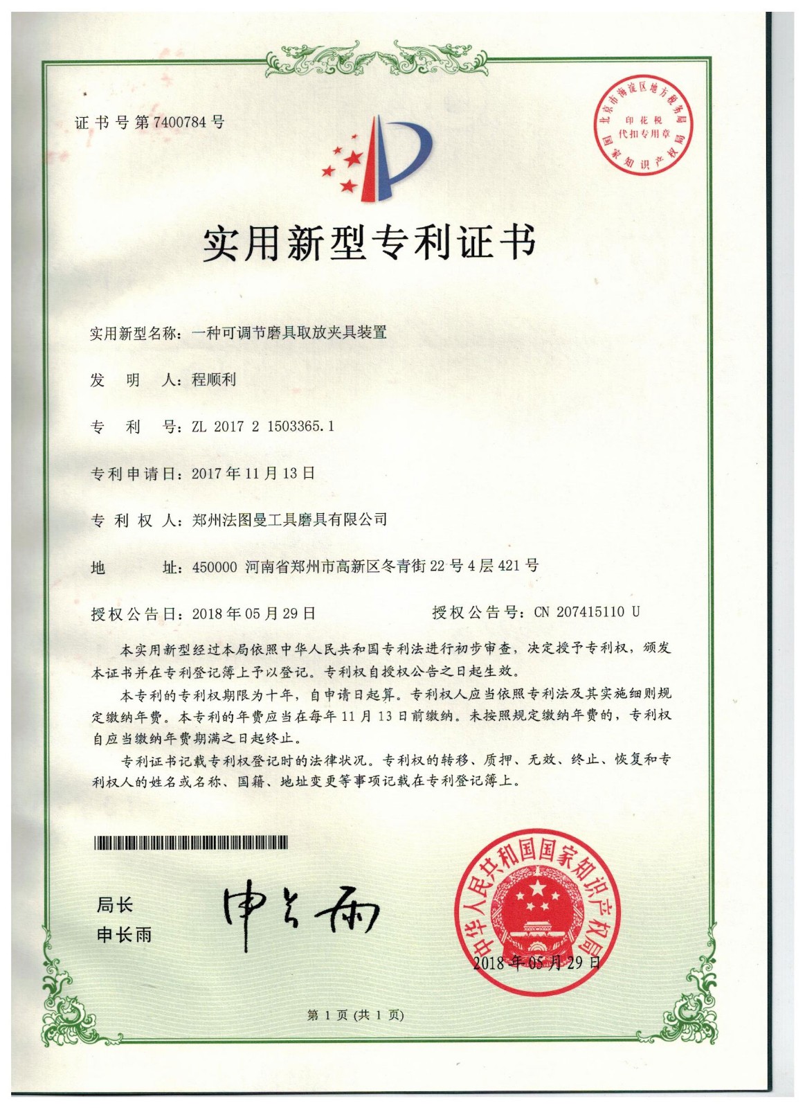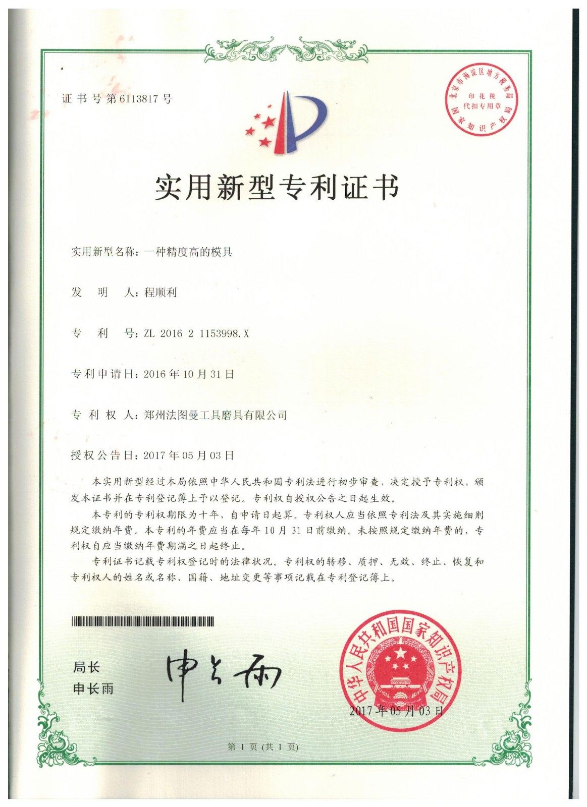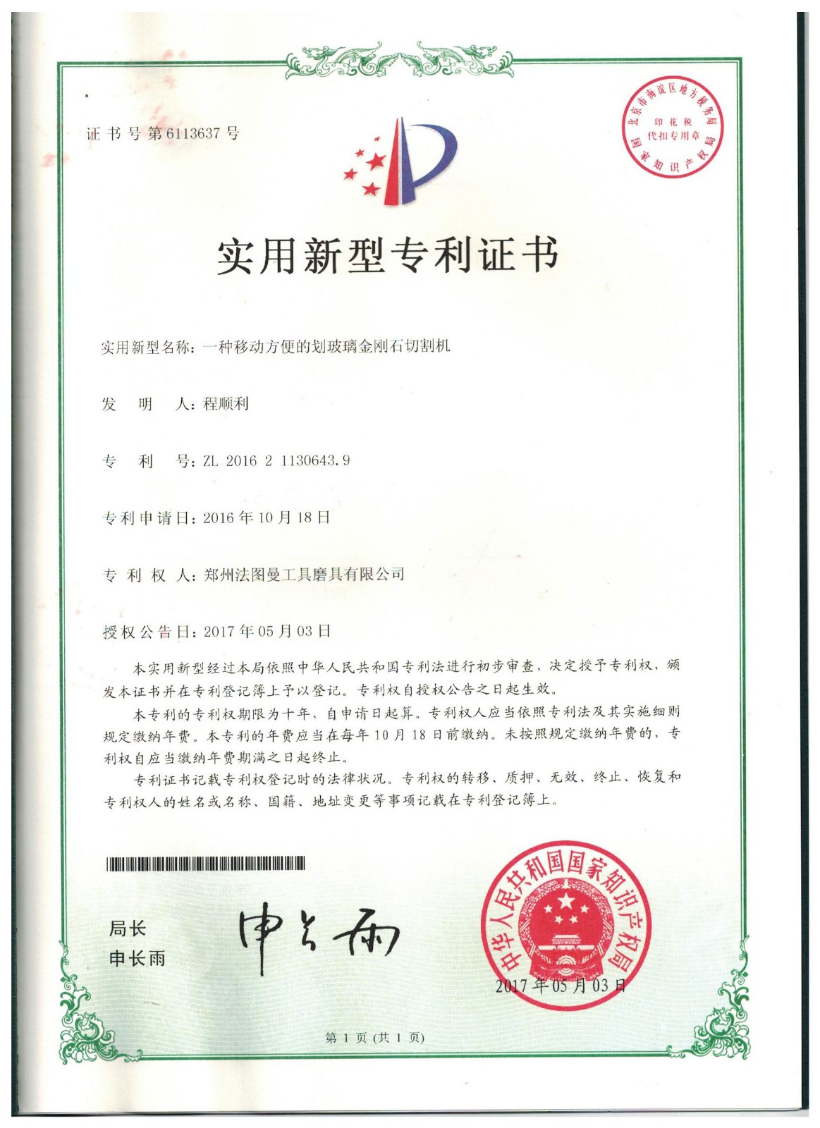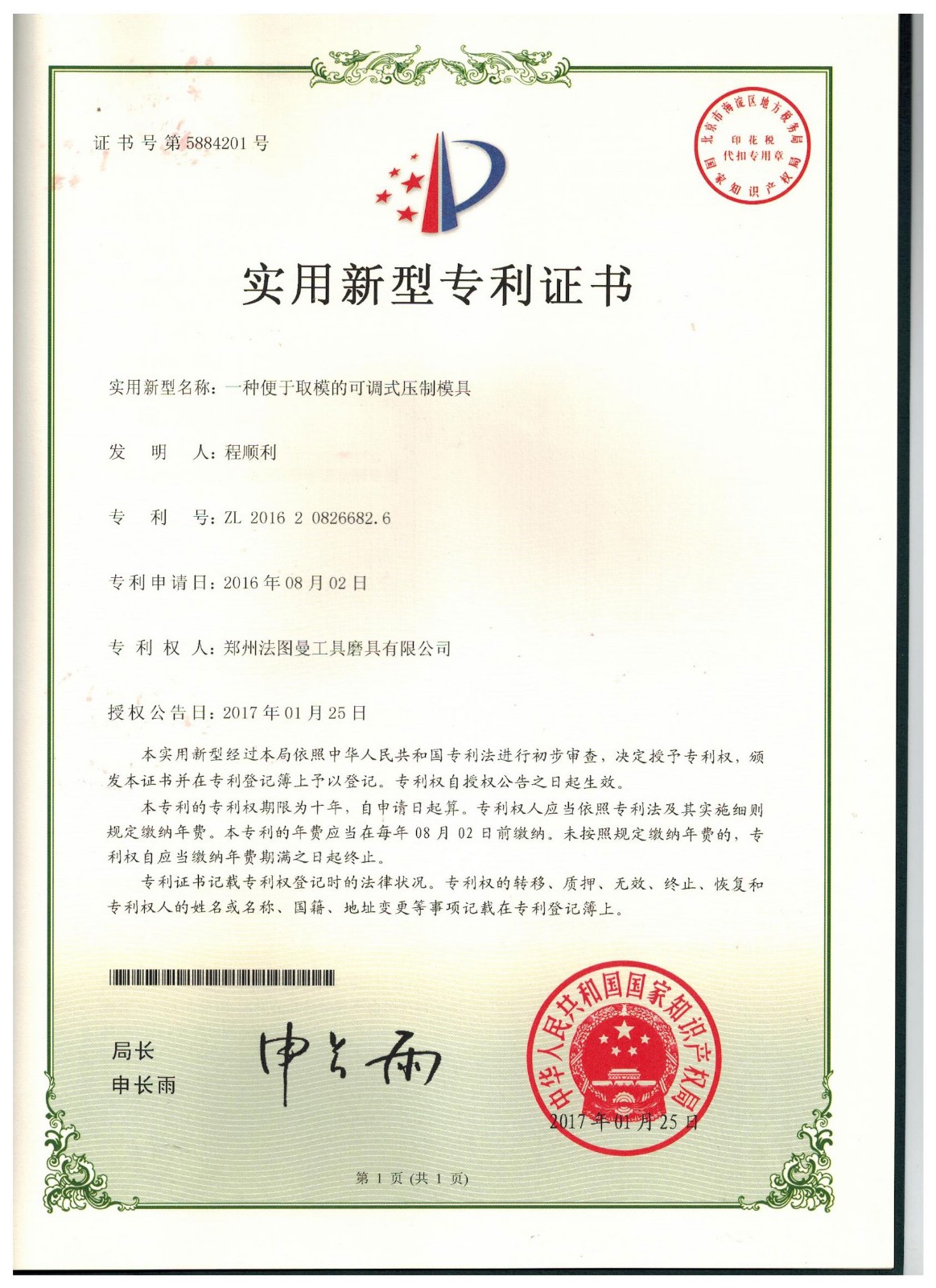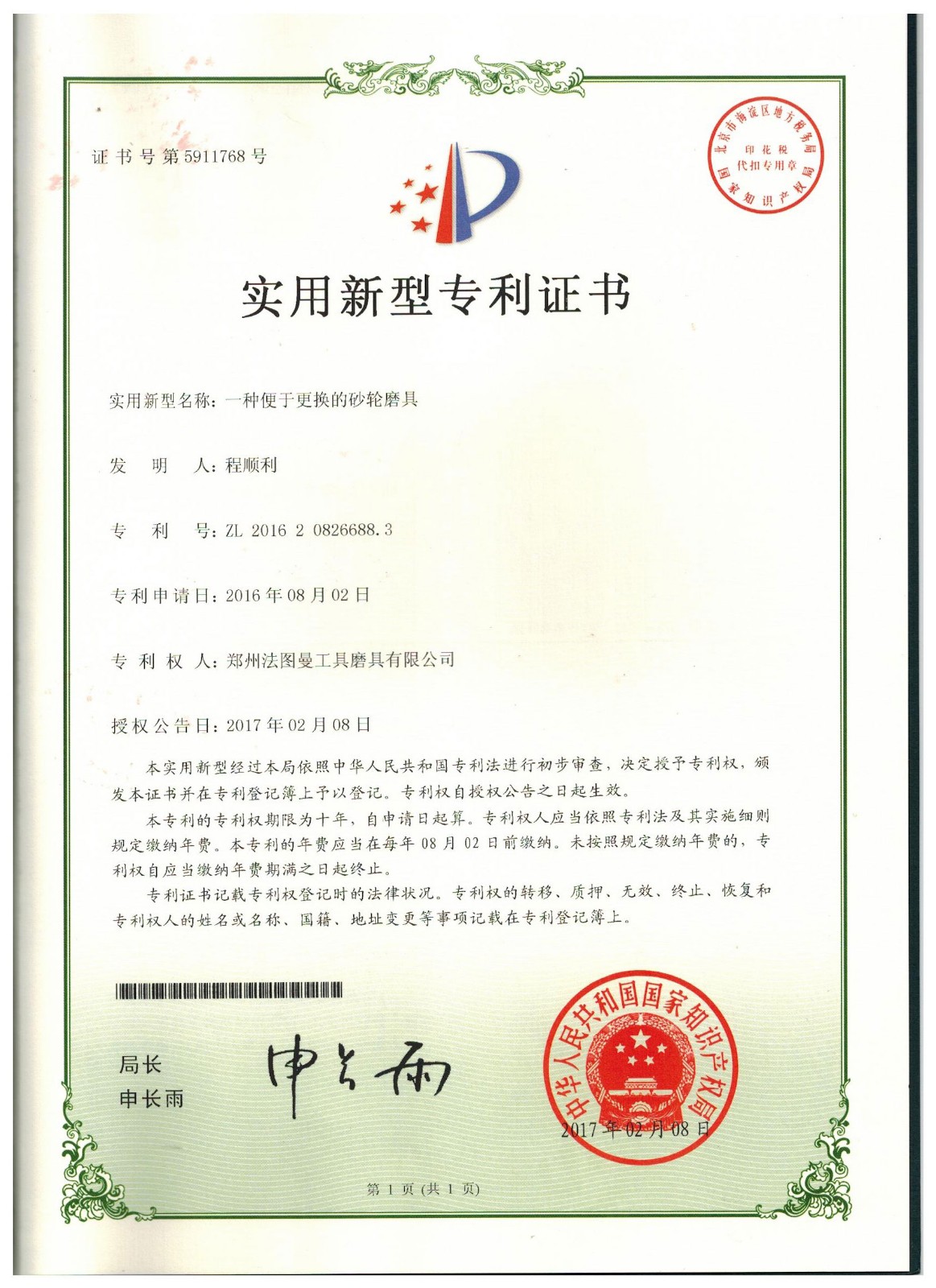 博爾德集團旗下專利證書展示