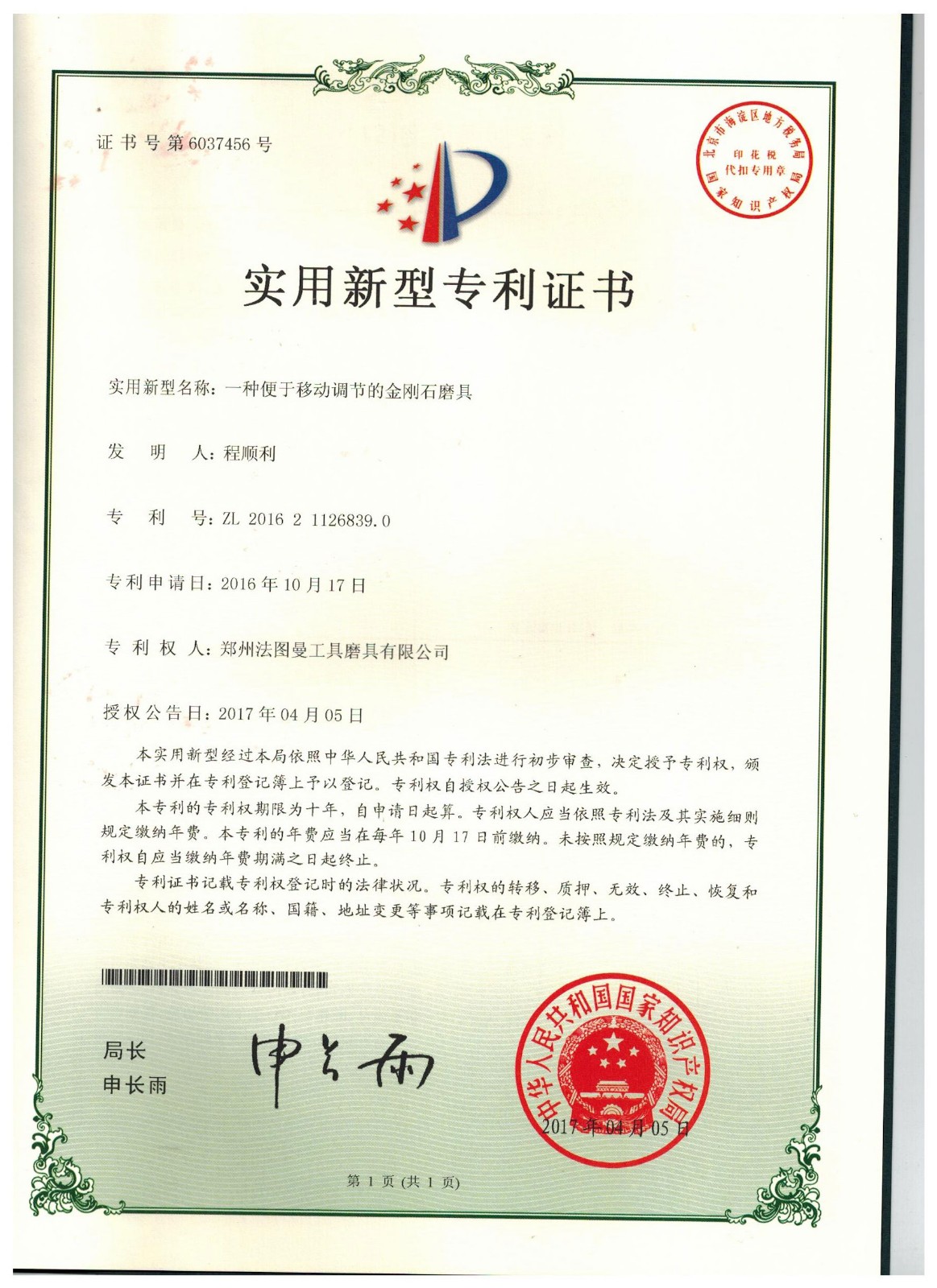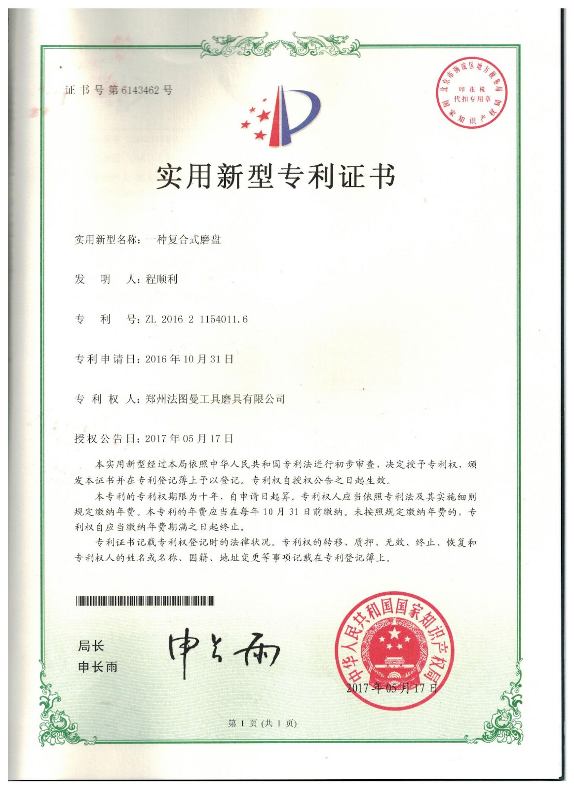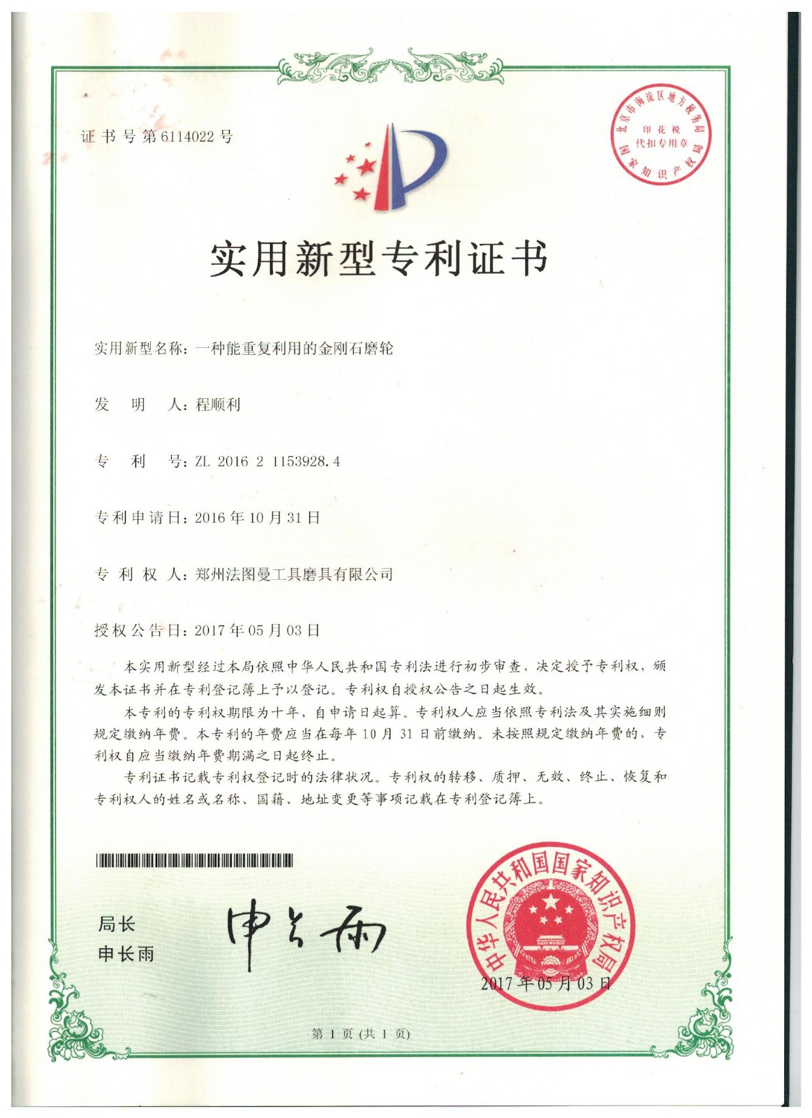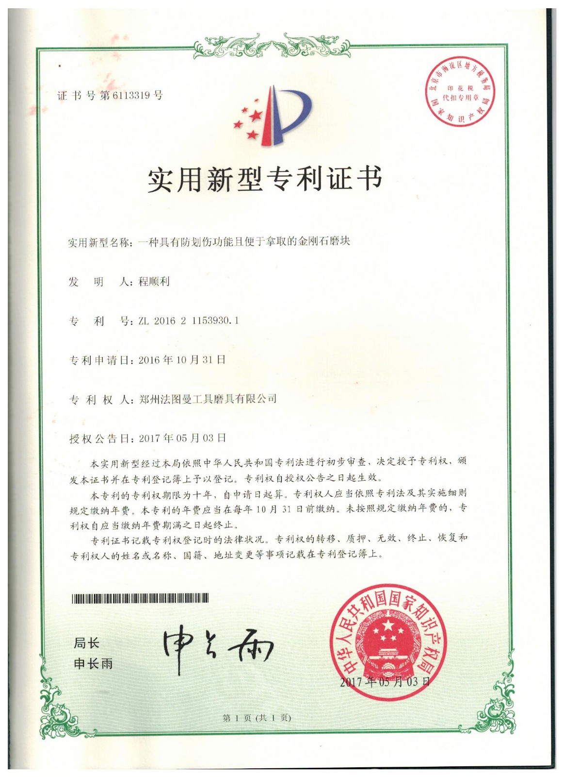 鄭州博鈺特超硬材料制品有限公司專利