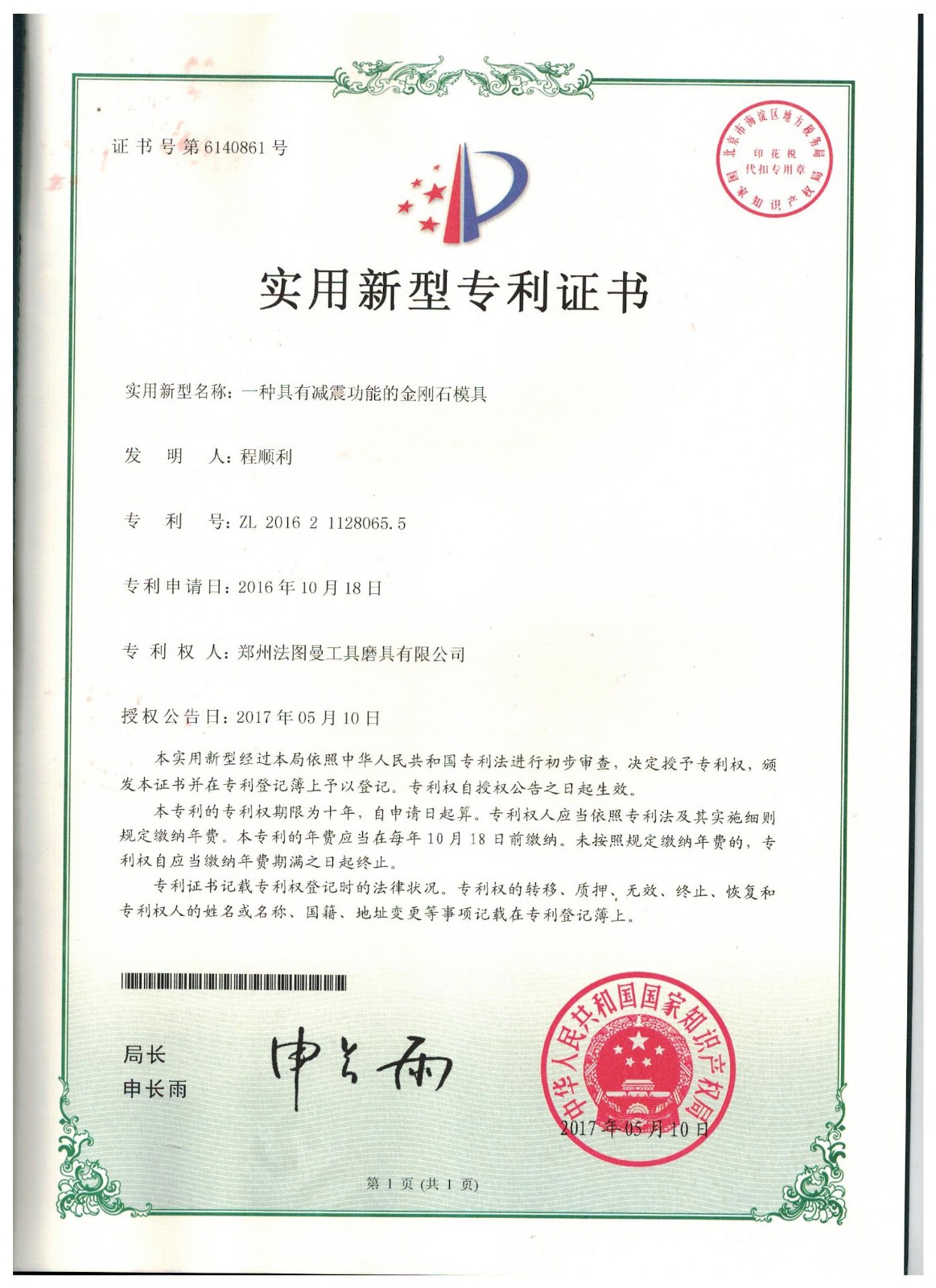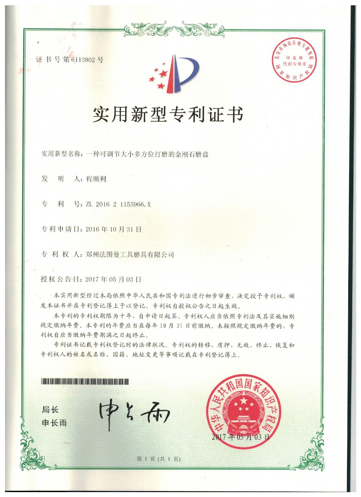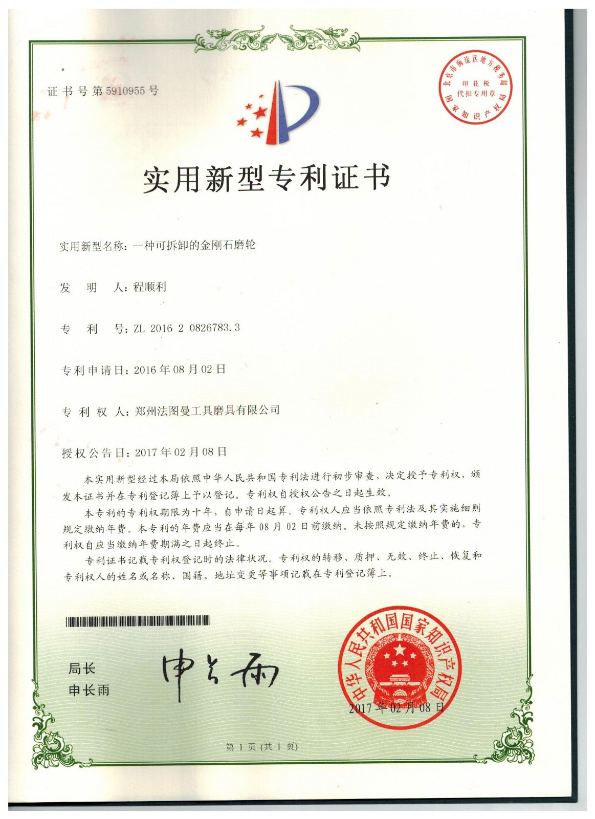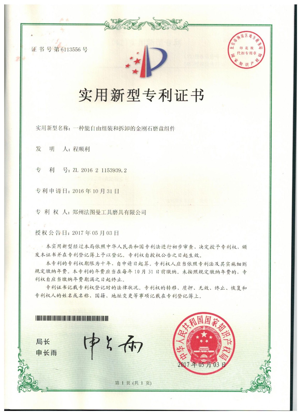 鄭州博鈺特超硬材料制品有限公司專利